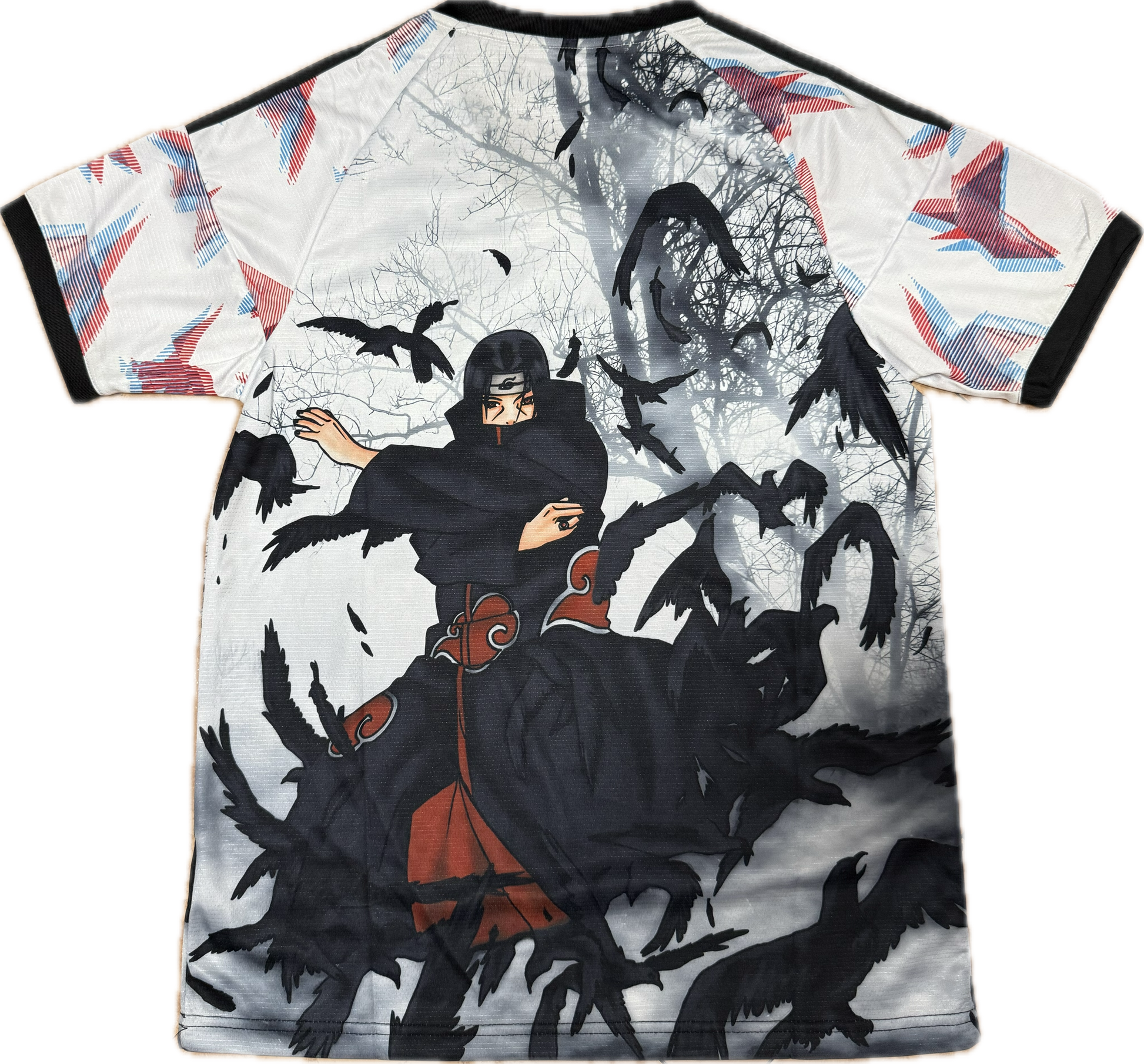 Esta camiseta combina la pasión por el fútbol y la cultura japonesa en una sola prenda. Presenta un impactante diseño de un guerrero ninja envuelto en una bandada de cuervos, transmitiendo fuerza, misterio y determinación. El fondo está lleno de detalles que evocan ramas y sombras, creando un efecto visual llamativo y único.